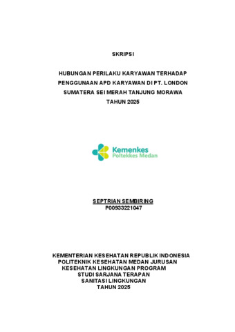 SEMBIRING, SEPTRIAN (2025) HUBUNGAN PERILAKU KARYAWAN TERHADAP PENGGUNAAN APD KARYAWAN DI PT. LONDON SUMATERA SEI MERAH TANJUNG MORAWA TAHUN 2025. Diploma thesis, Poltekkes Kemenkes Medan.