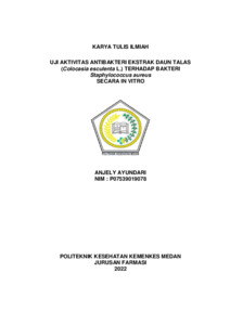 ANJELY AYUNDARI, ANJELY AYUNDARI (2022) Uji Aktivitas Antibakteri Ekstrak Daun Talas (Colocasia esculenta L.) Terhadap Bakteri Staphylococcus aureus Secara In Vitro. Diploma thesis, Poltekkes Kemenkes Medan.