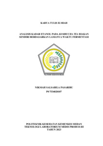 Pasaribu, Nikmah Salsabila (2023) ANALISIS KADAR ETANOL PADA KOMBUCHA TEA BIAKAN SENDIRI BERDASARKAN LAMANYA WAKTU FERMENTASI. Diploma thesis, Poltekkes Kemenkes Medan.