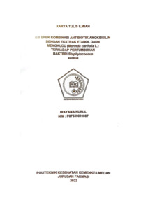 Irayana Nurul, Irayana Nurul (2022) Uji Efek Kombinasi Antibiotik Amoksisilin Dengan Ekstrak Etanol Daun Mengkudu (Morinda citrifolia L.) Terhadap Pertumbuhan Bakteri Staphylococcus aureus. Diploma thesis, Poltekkes Kemenkes Medan.