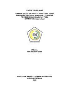 IRMAYA, IRMAYA (2022) UJI EFEKTIVITASSALEPEKSTRAK ETANOL DAUN BAKUNG PUTIH (Crinum asiaticum L.) TERHADAP PENYEMBUHAN LUKA SAYAT PADA MARMUT (Cavia porcellus). Diploma thesis, Poltekkes Kemenkes Medan.