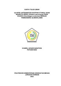 NASUTION, KHAIRIL AZHARI NASUTION (2022) UJI EFEK ANTIDIABETES EKSTRAK ETANOL DAUN MAHKOTA DEWA (Phaleria macrocarpa) PADA KELINCI (Oryctolagus cuniculus) DENGAN PEMBANDING GLIBENKLAMID. Diploma thesis, Poltekkes Kemenkes Medan.