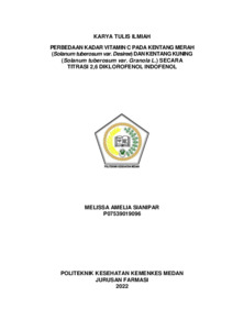 MELISSA AMELIA SIANIPAR, MELISSA AMELIA SIANIPAR (2022) PERBEDAAN KADAR VITAMIN C PADA KENTANG MERAH (Solanum tuberosum var. Desiree) DAN KENTANG KUNING (Solanum tuberosum var. Granola L.) SECARA TITRASI 2,6 DIKLOROFENOL INDOFENOL. Diploma thesis, Poltekkes Kemenkes Medan.