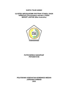 NADAPDAP, PUTRI NERKIA NADAPDAP (2022) UJI EFEK HIPOGLIKEMIK EKSTRAK ETANOL DAUN KIRINYUH (Chromolaena odorata) PADA MENCIT JANTAN (Mus musculus). Diploma thesis, Poltekkes Kemenkes Medan.