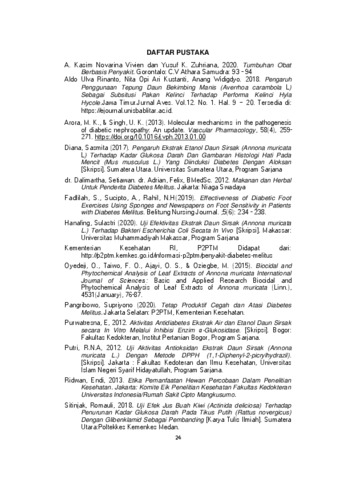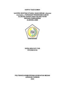 SOFIA HIDAYATI YUS, SOFIA HIDAYATI YUS (2022) UJI EFEK EKSTRAK ETANOL DAUN SIRSAK (Anonna muricata L.) TERHADAP PENURUNAN KADAR GLUKOSA DARAH PADA KELINCI PUTIH DENGAN PEMBANDING GLIBENKLAMID. Diploma thesis, Poltekkes Kemenkes Medan.