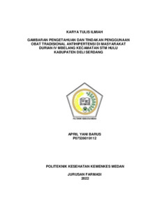 BARUS, APRIL YANI BARUS (2022) GAMBARAN PENGETAHUAN DAN TINDAKAN PENGGUNAAN OBAT TRADISIONAL ANTIHIPERTENSI DI MASYARAKAT DURIAN IV MBELANG KECAMATAN STM HULU KABUPATEN DELI SERDANG. Diploma thesis, Poltekkes Kemenkes Medan.