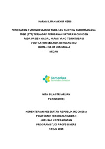 Aruan, Nita Sulastri (2025) Penerapan Evidence Based Tindakan Suction Endotracheal Tube (Ett) Terhadap Perubahan Saturasi Oksigen Pada Pasien Gagal Napas Yang Terintubasi Ventilator Mekanik Di Ruang Icu Rumah Sakit Umum Haji Medan. Diploma thesis, Poltekkes Kemnkes Medan.