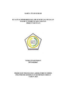 Pohan, Nurjannah (2023) KUALITAS MIKROBIOLOGI AIR SUMUR GALI DI JALAN PASAR VI TEMBUNG KECAMATAN PERCUT SEI TUAN. Diploma thesis, Poltekkes Kemenkes Medan.
