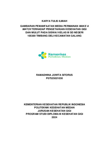 Sitorus, Ramadhina Juwita (2024) Gambaran Pemanfaatan Media Permainan Make A Match terhadap Pengetahuan Kesehatan Gigi dan Mulut pada Siswa/i Kelas III SD Negeri 105389 Timbang Deli Kecamatan Galang. Diploma thesis, Poltekkes Kemenkes Medan.