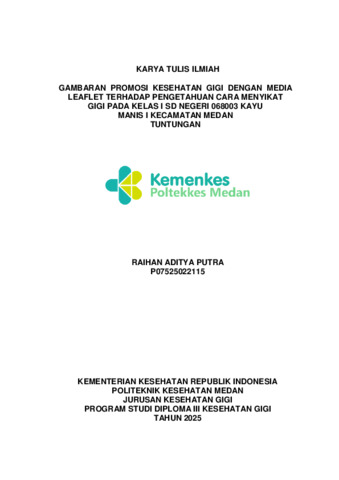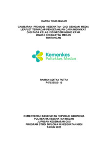 Putra, Raihan Aditya (2025) Gambaran Promosi Kesehatan Gigi dengan Media Leaflet terhadap Pengetahuan Cara Menyikat Gigi pada Siswa Kelas 1 di SDN 068003 Kayu Manis I Kecamatan Medan Tuntungan. Diploma thesis, Poltekkes Kemenkes Medan.