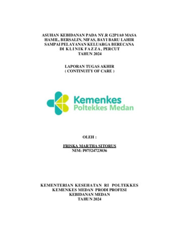 Berdasarkan data dan World Health Organization (WHO 2019) angka kematian ibu mencapai 305.000 jiwa. Berdasarkan data profil Dinas Kesehatan Kota Medan pada tahun 2019 sebesar 205 per 100.000 kelahiran hidup. Menurut WHO penyebab terjadinya kematian ibu adalah perdarahan, infeksi dan darah tinggi. Continuity of care chaplikasikan dengan tujuan melakukan asuhan kebidanan berkelanjutan sesuai dengan manajemen kebidanan, kepada Ny R 31 tahun, G2P1A0 sejak kehamilan trimester III, bersalin, nifas, BBL, dan pelayanan