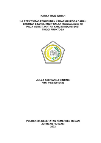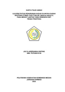 GINTING, JULYA ADERIANNA GINTING (2022) UJI EFEKTIVITAS PENURUNAN KADAR GLUKOSA DARAH EKSTRAK ETANOL KULIT SALAK (Salacca edulis R.) PADA MENCIT JANTAN YANG DIINDUKSI DIET TINGGI FRUKTOSA. Diploma thesis, Poltekkes Kemenkes Medan.