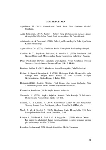 Imanuella, Yesyurun (2023) GAMBARAN KADAR HEMOGLOBIN (Hb) PADA PEMINUM TUAK DI KELURAHAN LOBUSONA KECAMATAN RANTAU SELATAN KABUPATEN LABUHANBATU. Diploma thesis, Poltekkes Kemenkes Medan.