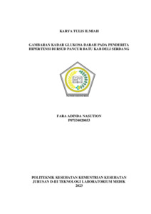 Nasution, Fara Adinda (2023) GAMBARAN KADAR GLUKOSA DARAH PADA PENDERITA HIPERTENSI DI RSUD PANCUR BATU KAB DELI SERDANG. Diploma thesis, Poltekkes Kemenkes Medan.