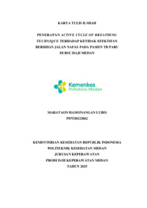 Lubis, Marataon Hamonangan (2025) Penerapan Active Cycle Of Breathing Technique Terhadap Ketidak Efektifan Bersihan Jalan Nafas Pada Pasien Tb Paru Di Rsu Haji Medan. Diploma thesis, Poltekkes Kemenkes Medan.