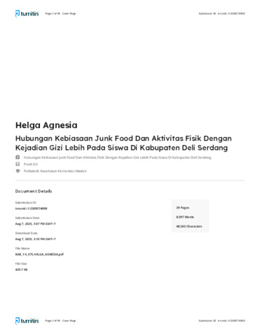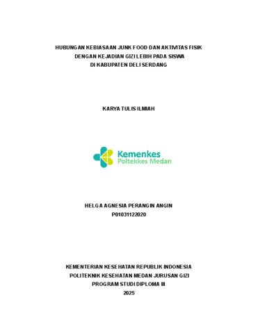 PERANGIN-ANGIN, HELGA AGNESIA (2025) HUBUNGAN KEBIASAAN JUNK FOOD DAN AKTIVITAS FISIK DENGAN KEJADIAN GIZI LEBIH PADA SISWA DI KABUPATEN DELI SERDANG. Diploma thesis, Poltekkes Kemenkes Medan.