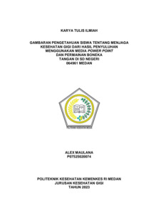 Maulana, Alex (2023) Gambaran Pengetahuan Siswa tentang Menjaga Kesehatan Gigi dari Hasil Pemberian Penyuluhan Menggunakan Media Power Point dan Permainan Boneka Di SD Negeri 064961 Medan. Diploma thesis, Poltekkes Kemenkes Medan.