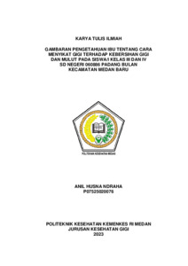 Ndraha, Anil Husna (2023) Gambaran Pengetahuan Ibu Tentang Cara Menyikat Gigi Terhadap Kebersihan Gigi Dan Mulut Pada Siswa/I Kelas III Dan IV Di SD Negeri 060886 Padang Bulan Kecamatan Medan Baru. Diploma thesis, Poltekkes Kemenkes Medan.