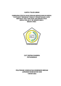 Shabira, Cut Rufina (2023) Gambaran Penyuluhan Dengan Menggunakan Media Flipchart Terhadap Tingkat Pengetahuan Cara Menyikat Gigi Yang Baik dan Benar Pada Siswa/i Kelas IV SDN 060811 Medan Area. Diploma thesis, Poltekkes Kemenkes Medan.