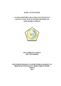 Barus, Eka Febrianty (2023) ANALISA BAKTERI Coliform PADA SAUS MAKANAN JAJANAN YANG DI JUAL DI SEKITAR SEKOLAH SMP NEGERI 35 MEDAN. Diploma thesis, Poltekkes Kemenkes Medan.