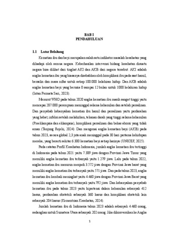 Kematian ibu dan bayi merupakan salah satu indikator masalah kesehatan yang dihadapi oleh semua negara. Keberhasilan intervensi bidang kesehatan disuatu negara bisa dilihat dari tingkat AKI dan AKB dari negara tersebut. Dan penyebab kebanyakan kematian ibu hamil dan persalinan yaitu perdarahan yang hebat, infeksi setelah melahirkan, tekanan darah yang tinggi selama kehamilan, Preeklampsia dan Eklampsia, komplikasi persalinan dan bekas aborsi yang tidak aman.