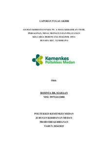 Siahaan, Rosinta Br (2025) Asuhan Kebidanan pada Ny. A Masa Kehamilan TM II Persalinan, Nifas, Neonatus dan Pelayanan Keluarga Berencana di Klinik Dita Husada Kec. TJ Morawa 2025. Diploma thesis, Poltekkes Kemenkes Medan.