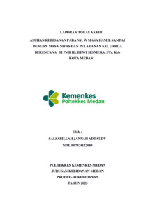 Addaudy, Salsabillah Jannah (2025) Asuhan Kebidanan pada Ny. W Masa Hamil Sampai dengan Masa Nifas dan Pelayanan Keluarga Berencana di PMB Hj. Dewi Sesmera, S. Tr.Keb Kota Medan. Diploma thesis, Poltekkes Kemenkes Medan.