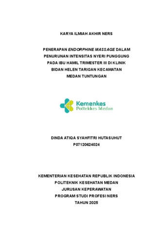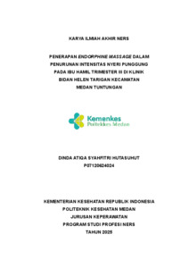 Hutasuhut, Dinda Atiqa Syahfitri (2025) Penerapan Endorphine Massage Dalam Penurunan Intensitas Nyeri Punggung Pada Ibu Hamil Trimester Iii Di Klinik Bidan Helen Tarigan Kecamatan Medan Tuntungan. Diploma thesis, Poltekkes Kemnkes Medan.