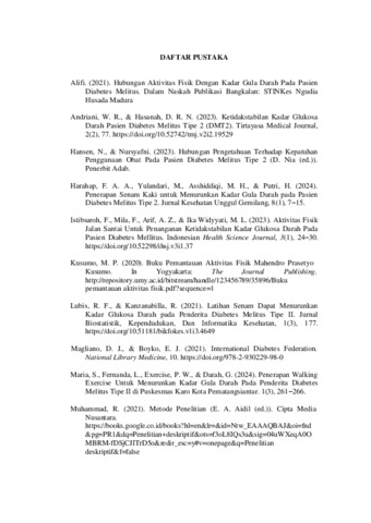 Nasution, Mora Baringin (2025) Penerapan Aktivitas Fisik Jalan Kaki Terhadap Kadar Gula Darah Pada Pasien Dm Tipe Ii Di Puskesmas Tuntungan Kec. Pancur Batu. Diploma thesis, Poltekkes Kemnkes Medan.