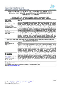 Berliana Sari, Berliana and Irma Syafriani, Irma and Ahmad Purnawarman, Faisal (2025) MOUTHWASH JERUK PURUT: POTENSI LARUTAN JERUK PURUT SEBAGAI OBAT KUMUR ALAMI DALAM MEMBERSIHKAN DAN MENCEGAH BAU MULUT. Journal of Dental Hygiene and Therapy, 6 (2). ISSN 2723-1607