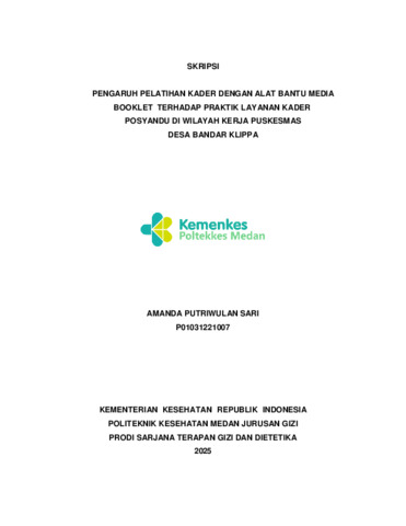 SARI, AMANDA PUTRIWULAN (2025) PENGARUH PELATIHAN KADER DENGAN ALAT BANTU MEDIA BOOKLET TERHADAP PRAKTIK LAYANAN KADER POSYANDU DI WILAYAH KERJA PUSKESMAS DESA BANDAR KLIPPA. Diploma thesis, Poltekkes Kemenkes Medan.