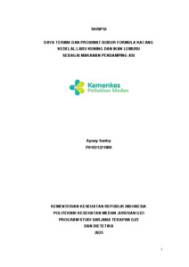 SANTRY, AYUNY (2025) DAYA TERIMA DAN PROXIMAT BUBUR FORMULA KACANG KEDELAI, LABU KUNING DAN IKAN LEMURU SEBAGAI MAKANAN PENDAMPING ASI. Diploma thesis, Poltekkes Kemenkes Medan.