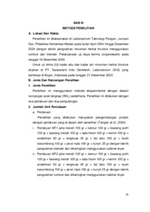 Penelitian ini bertujuan untuk mengetahui pengaruh teknik pengolahan minuman herbal tinuktuk menggunakan teknik pengolahan blender dan tumbuk terhadap daya terima, kadar abu, dan kadar air.