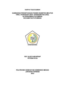 NADAPDAP, ROY ALDO NADAPDAP (2022) GAMBARAN PENGETAHUAN PASIEN DIABETES MELITUS TIPE 2 TERHADAP OBAT ANTIDIABETES ORAL DI PUSKESMAS PATUMBAK KECAMATAN PATUMBAK. Diploma thesis, Poltekkes Kemenkes Medan.