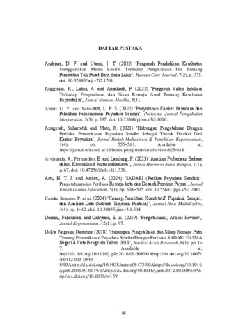 Kata kunci : Promosi Kesehatan, Leaflet, SADARI, Pengetahuan, Sikap