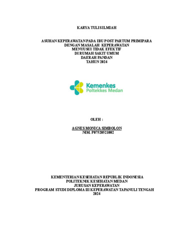 Simbolon, Agnes Monica (2024) ASUHAN KEPERAWATAN PADA IBU POST PARTUM PRIMIPARA DENGAN MASALAH KEPERAWATAN MENYUSUI TIDAK EFEKTIF DI RUMAH SAKIT UMUM DAERAH PANDAN TAHUN 2024. Diploma thesis, Poltekkes Kemenkes Medan.
