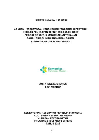 Sitorus, Anita Imelda (2025) Asuhan Keperawatan Pada Pasien Penderita Hipertensi Dengan Penerapan Teknik Relaksasi Otot Progresif Untuk Menurunkan Tekanan Darah Tinggi Di Ruang Jabal Rahma Rumah Sakit Umum Haji Medan. Diploma thesis, Poltekkes Kemnkes Medan.