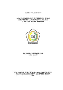 Salsabila, Mulia Islamy (2023) ANALISA KANDUNGAN KLORIN PADA BERAS KETAN PUTIH YANG DIPERJUALBELIKAN DI PASAR V MEDAN MARELAN. Diploma thesis, Poltekkes Kemenkes Medan.