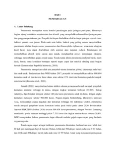Pneumonia merupakan salah satu penyebab utama kematian pada anak di seluruh dunia, terutama di negara berkembang. Salah satu masalah keperawatan yang sering timbul pada anak dengan pneumonia adalah bersihan jalan napas tidak efektif. Nebulisasi merupakan terapi inhalasi yang dapat membantu mengencerkan sekret dan melebarkan saluran napas.
