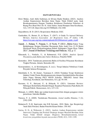 Tujuan Penelitian: Penelitian ini bertujuan untuk menggambarkan penerapan terapi nebulisasi untuk meningkatkan bersihan jalan napas tidak efektif pada anak dengan pneumonia di RSUD Sidikalang.