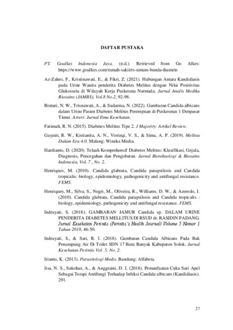 Kata kunci : Candida albicans, Diabetes Melitus, Kandidiasis