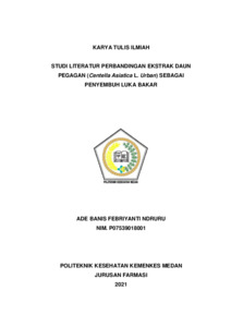 NDRURU, ADE BANIS FEBRIYANTI NDRURU (2021) STUDI LITERATUR PERBANDINGAN EKSTRAK DAUN PEGAGAN (Centella Asiatica L. Urban) SEBAGAI PENYEMBUH LUKA BAKAR. Diploma thesis, Poltekkes Kemenkes Medan.