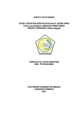 NASUTION, FADHLAH AL-UYUN NASUTION (2021) STUDI LITERATUR EFEKTIVITAS KULIT JERUK NIPIS (Citrus aurantifolia) SEBAGAI INSEKTISIDA NABATI TERHADAP Aedes aegypti. Diploma thesis, Poltekkes Kemenkes Medan.
