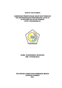 KHAIRUNNISA GUNAWAN, KHAIRUNNISA GUNAWAN (2021) GAMBARAN PENGETAHUAN SIKAP DAN TINDAKAN DALAM PENCEGAHAN PENYEBARAN COVID-19 DI KECAMATAN DATUK BANDAR KOTA TANJUNGBALAI. Diploma thesis, Poltekkes Kemenkes Medan.