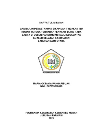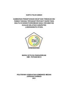 PANGARIBUAN, MARIA OCTAVIA PANGARIBUAN (2021) GAMBARAN PENGETAHUAN SIKAP DAN TINDAKAN IBU RUMAH TANGGA TERHADAP PENYAKIT DIARE PADA BALITA DI DUSUN PARDOMUAN NAULI KECAMATAN KUALUH SELATAN KABUPATEN LABUHANBATU UTARA. Diploma thesis, Poltekkes Kemenkes Medan.