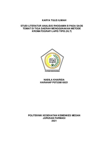 HARAHAP, NABILA KHAIRIDA HARAHAP (2021) STUDI LITERATUR ANALISIS RHODAMIN B PADA SAOS TOMAT DI TIGA DAERAH MENGGUNAKAN METODE KROMATOGRAFI LAPIS TIPIS (KLT). Diploma thesis, Poltekkes Kemenkes Medan.
