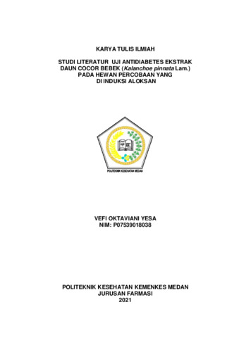 VEFI OKTAVIANI YESA, VEFI OKTAVIANI YESA (2021) STUDI LITERATUR UJI ANTIDIABETES EKSTRAK DAUN COCOR BEBEK (Kalanchoe pinnata Lam.) PADA HEWAN PERCOBAAN YANG DI INDUKSI ALOKSAN. Diploma thesis, Poltekkes Kemenkes Medan.