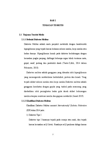 Latar Belakang : Diabetes melitus merupakan gangguan yang ditandai oleh hiperglikemia