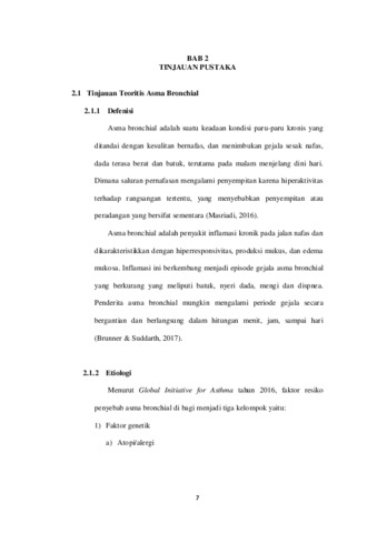 bronchial (Profil Kesehatan Indonesia, 2016). Berdasarkan laporan Riset