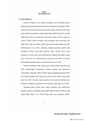 Latar Belakang:Gastritis Adalah suatu keadaan peradangan atau perdarahan mukosa lambung